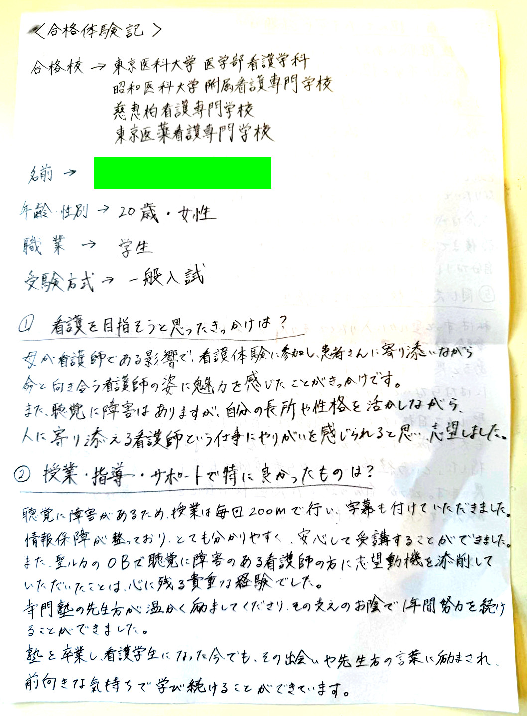 このような予備校は多く 本物の合格レポートは有るのか? 何年前に合格したのか?何人合格しているのかも? 不明で有るところが多いです。 本当に合格している生徒さんなら直筆の体験記や合格通知を提出してくれます。また、本当に合格しているなら「先輩」と話せるはずです。